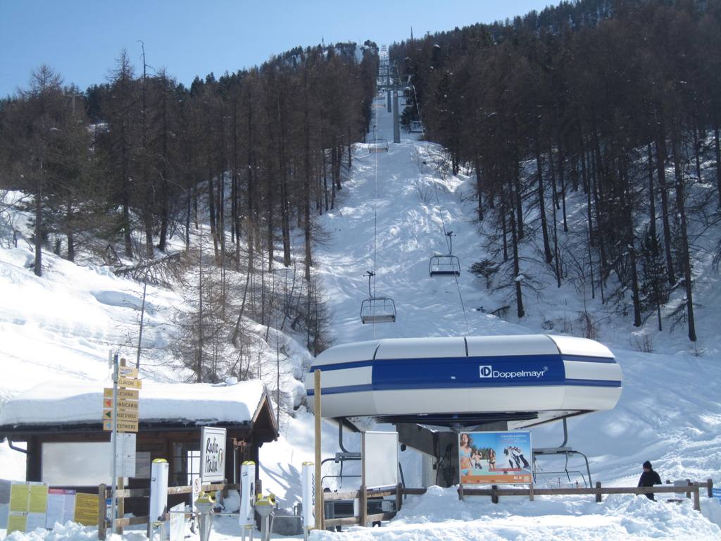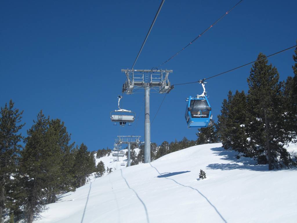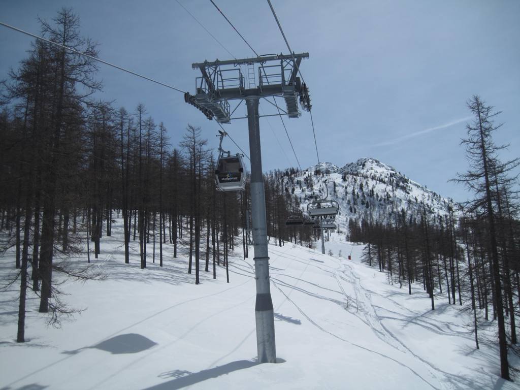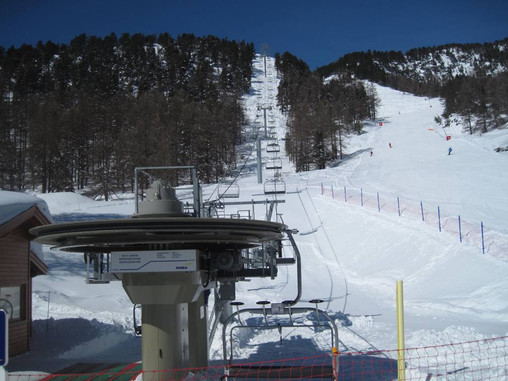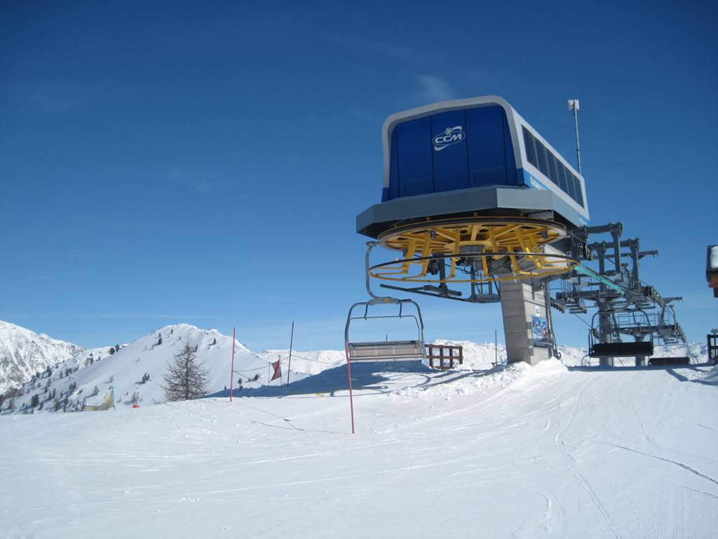 4-CLD Cit Roc|Poma|1992 při křížení s 4-CLF Nuovo Garnel|Doppelmayr|2003 a s vlekem Sises v pozadí