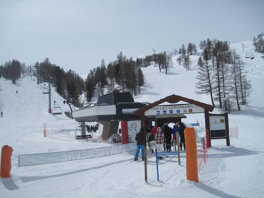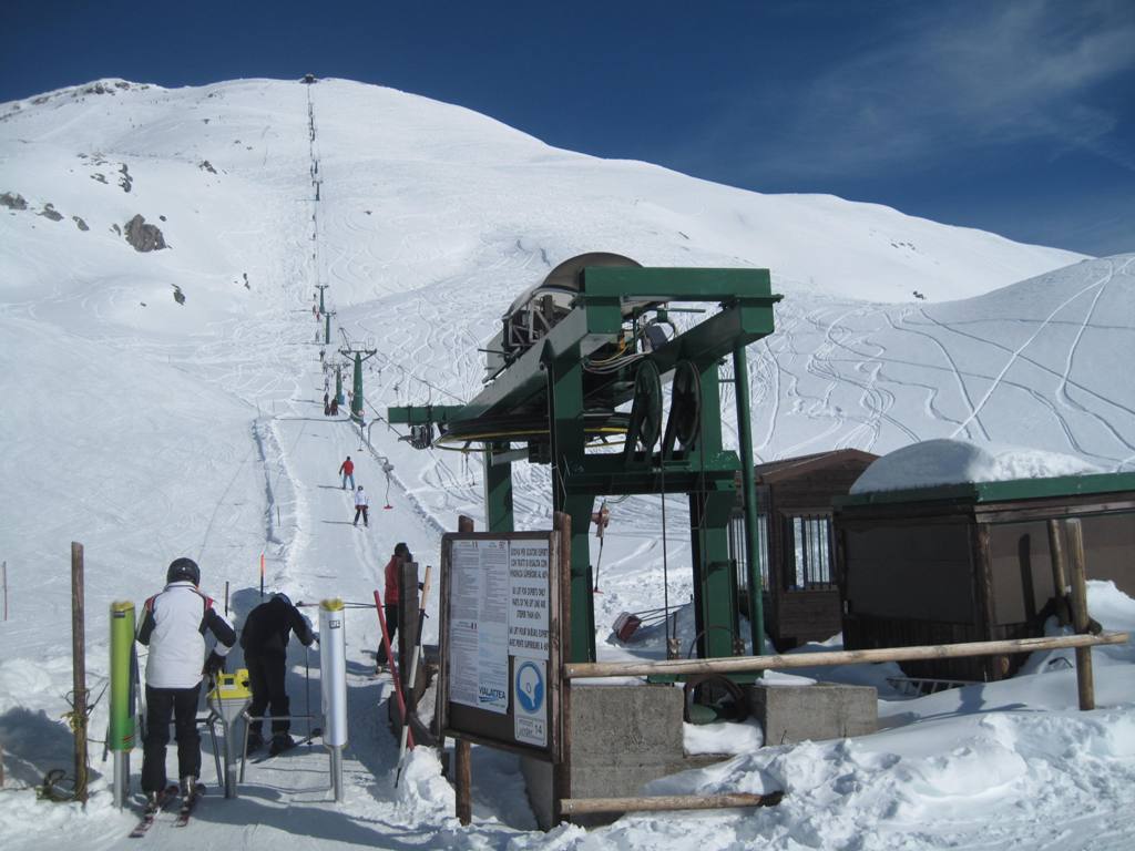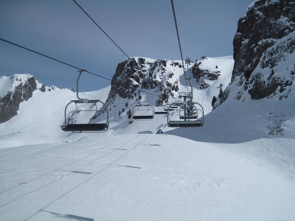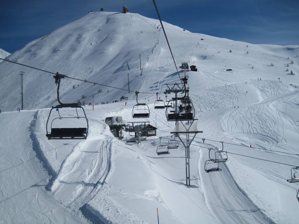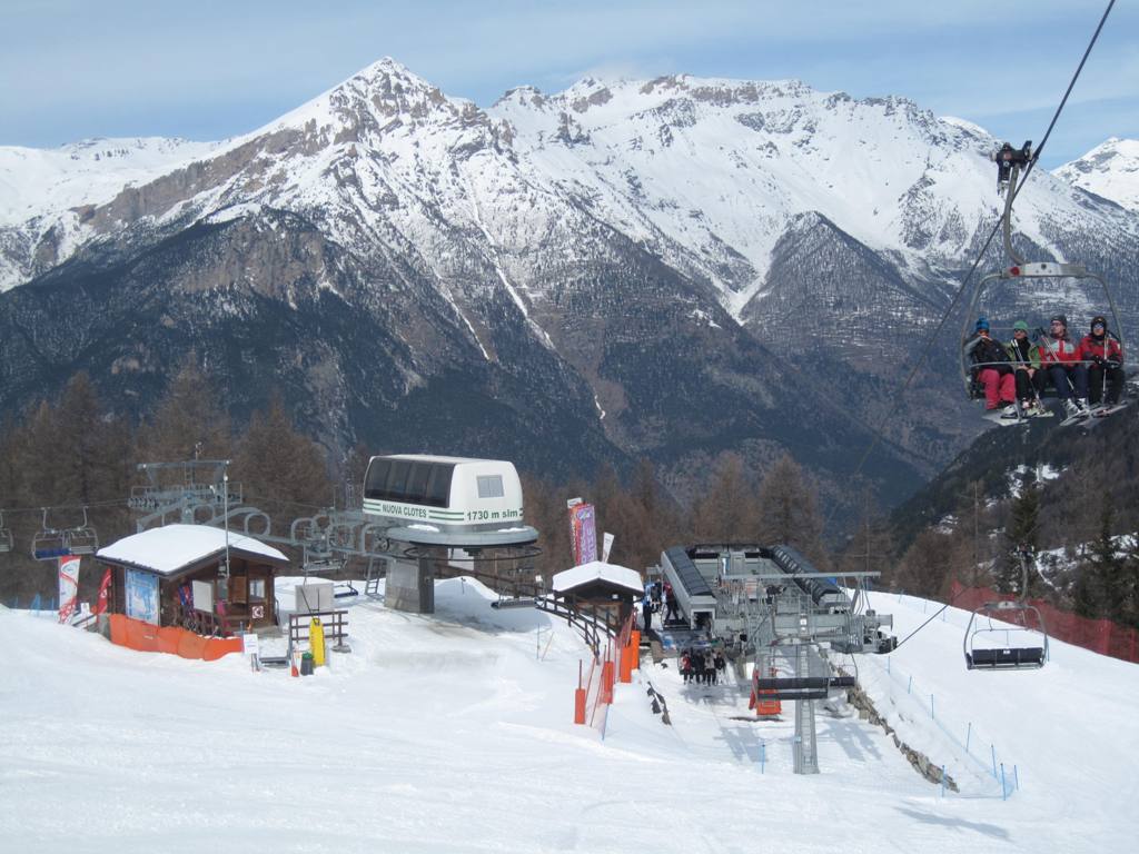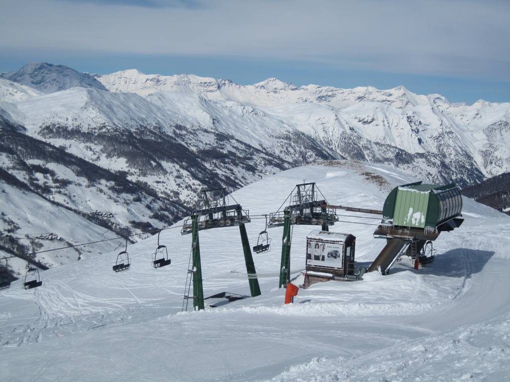 4-CLD Cit Roc|Poma|1992 při křížení s 4-CLF Nuovo Garnel|Doppelmayr|2003 a s vlekem Sises v pozadí