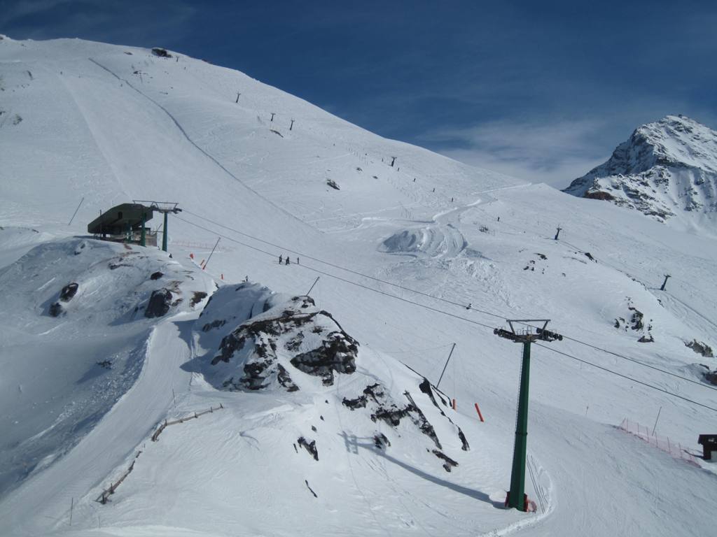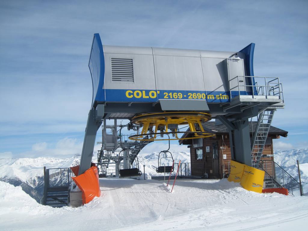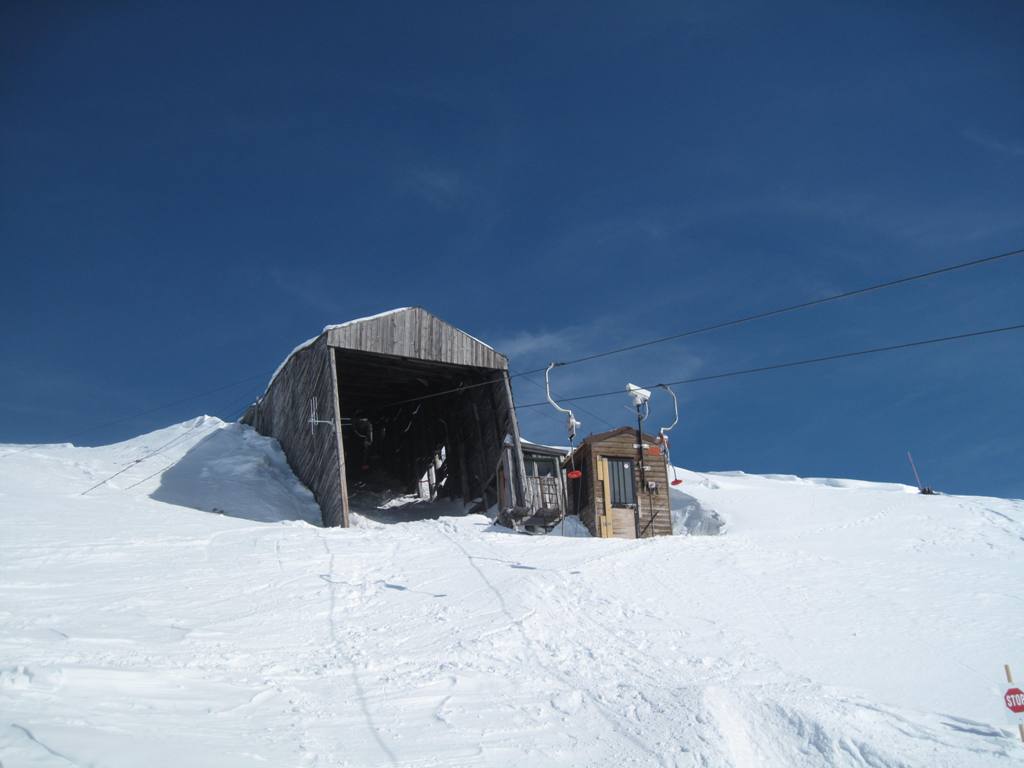 horní stanice stejné lanovky s vlekem Motta II. v pozadí (nejvyšší bod areálu)