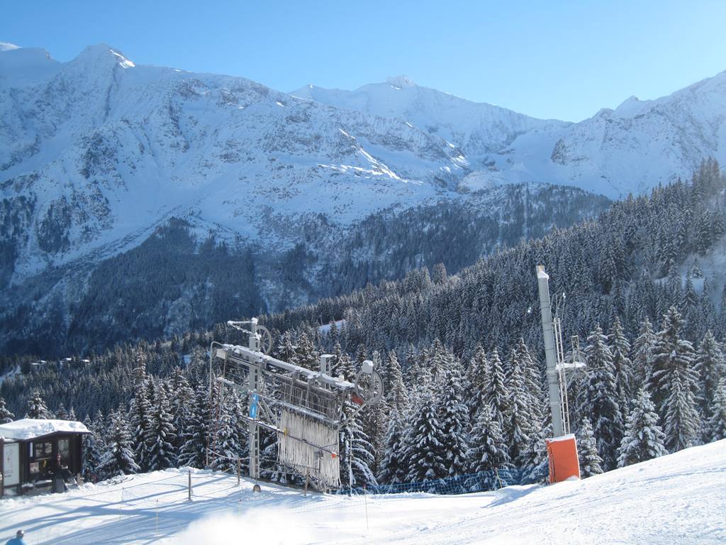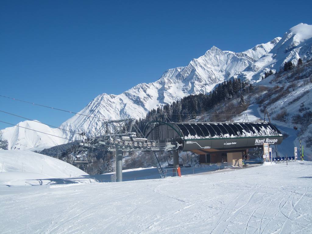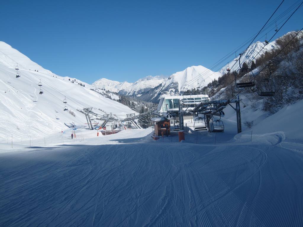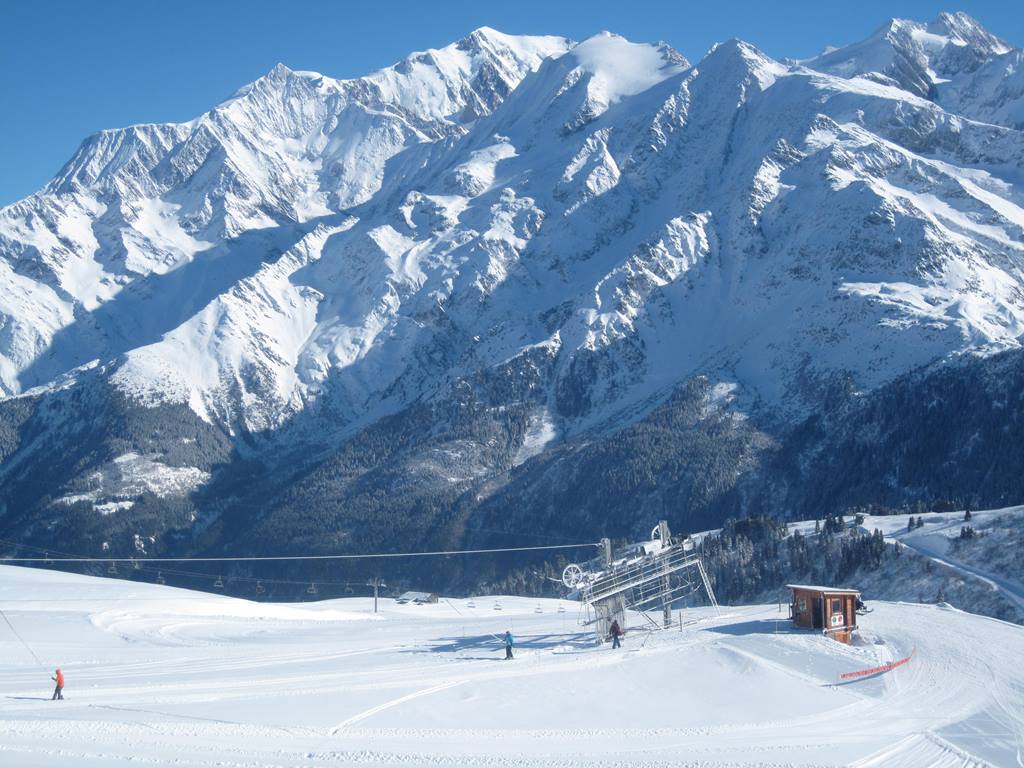 Les Contamines. Jedná se o menší středisko, ve kterém je "pouze" 120 km sjezdovek. Do střediska jsem si udělal výlet během týdenního pobytu v oblasti Evasion Mont-Blanc (Megéve, Combloux, Saint-Gervais), do které Les Contamines také patří a tudíž zde platí i skipas. Středisko je z hlediska dopravy dobře dostupné, do Ženevy je to pouze 75 km (většina po dálnici), propojení se zbytkem oblasti Evasion Mont-Blanc je zajištěno skibusy, popřípadě místními linkovými autobusy (3,50 EUR jedna jízda). Středisko leží bezprostředně pod masivem Mont-Blancu. Vzhledem k poloze většiny sjezdovek ve výškách okolo 2000 m.n.m. zde nejsou výraznější problémy s nedostatkem sněhu. Pokud k tomu přidám úžasné počasí, které v době mé návštěvy panovalo, a také minimum lidí na sjezdovkách nelze se divit, že jsem si jednodenní pobyt v Les Contamines náležitě užil, lyžování bylo opravdu úžasné.