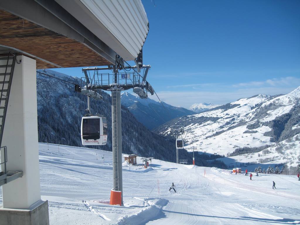 16-MGD Ruelle (Poma, 2000), vede z vesnice Hauteluce, kabiny mají mezi sebou poměrně velké intervaly a ve stanici vždy na nějakou dobu úplně zastaví