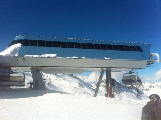 Poznámka: Pohled na mezistanici budované lanovky Gletscherjet III+IV