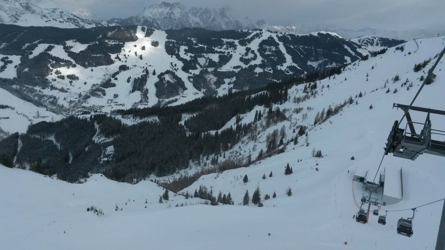 Den 1.: Projety jižní svahy nad Saalbachem a Hinterglemmem a propojení do Fieberbrunnu.