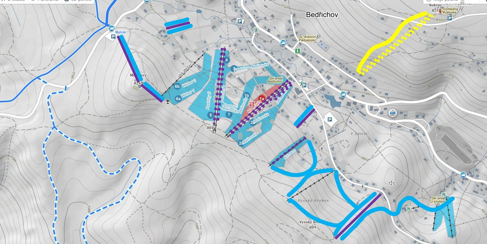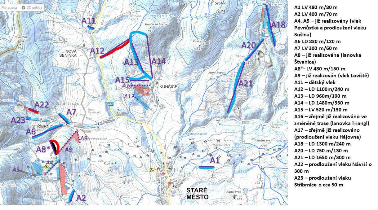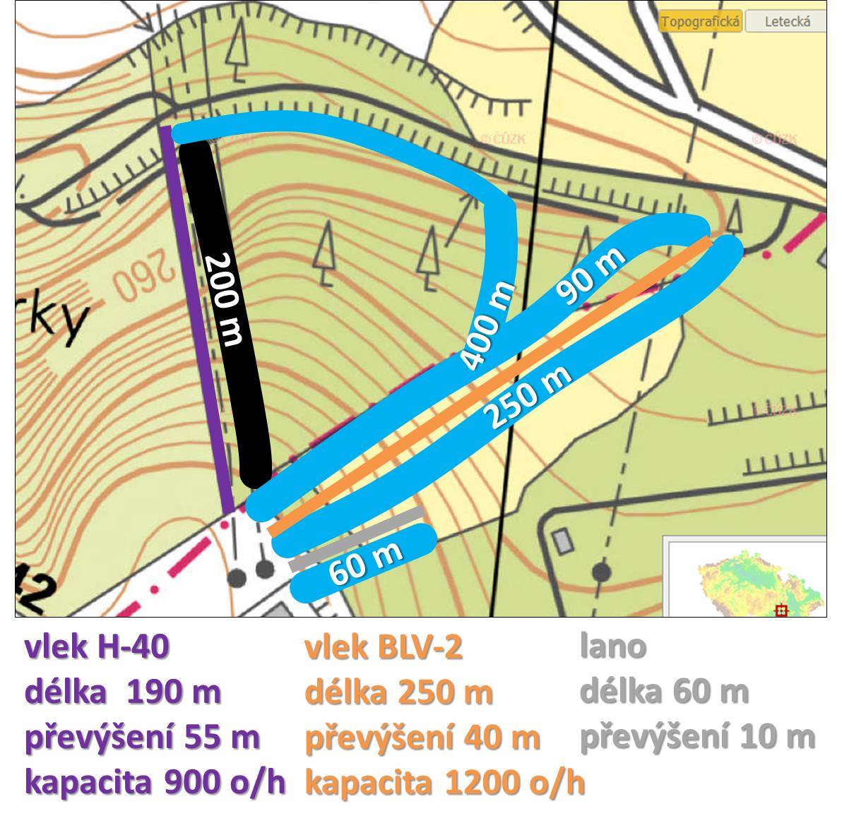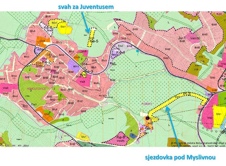 V této souvislosti připojuju návrh na rozšíření tohoto areálu, který by mohl vykazovat na okolí Brna velice slušnou celkovou délku sjezdovek 1 km.