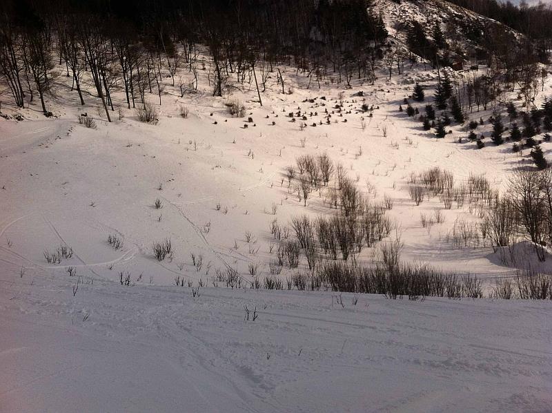 No sjezdovka je po levé straně od vleku. Pravá strana je už zarostlá. Ty sjezdovky nemají ani určení, jaká je to obtížnost. Ale i po pravé straně se dá dobře lyžovat. Hlavně po pravé straně nikdo moc nejezdí. Protože tam jsou ty křoví, ale dá se jim dobře vyhnout.