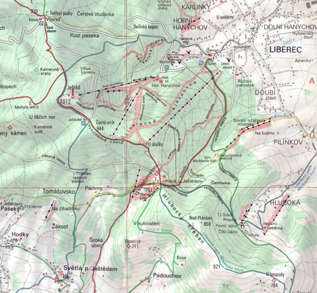 Jinak v popisu střediska na zadní straně mapy je uvedena možnost sjezdu s rovinatými úseky z Plání do Liberce po tzv. Hraběcí cestě.