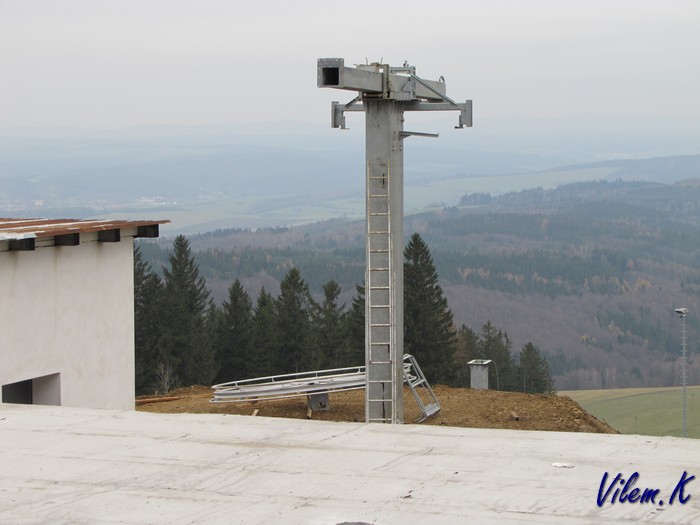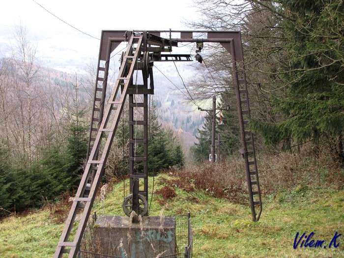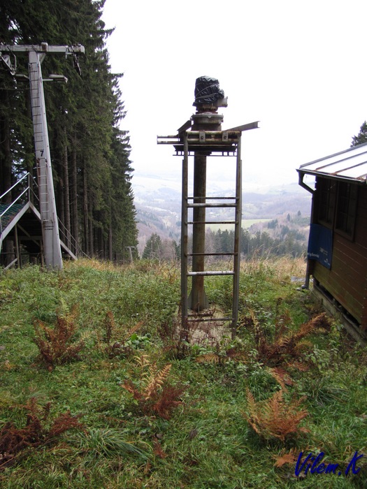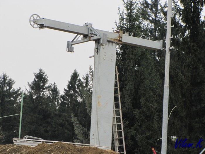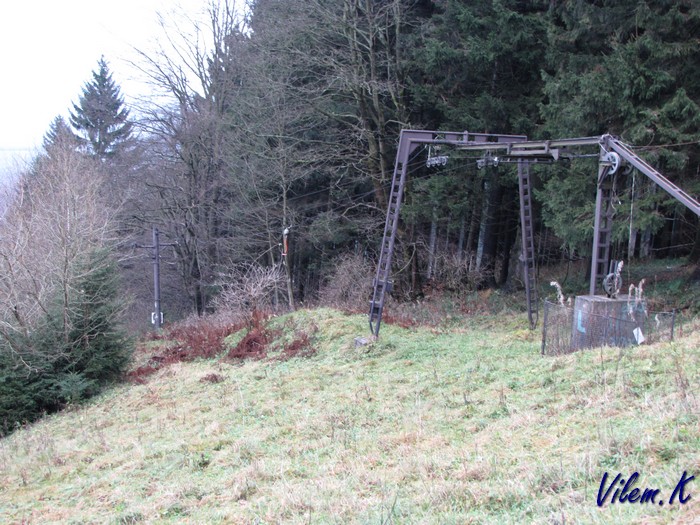 Trochu mě překvapilo, že prozatimní kontrukce horní stanice odpovídá stanici vleku F. Podle fotek z netu vypadá horní stanice DDH Hčka uplně jinak.