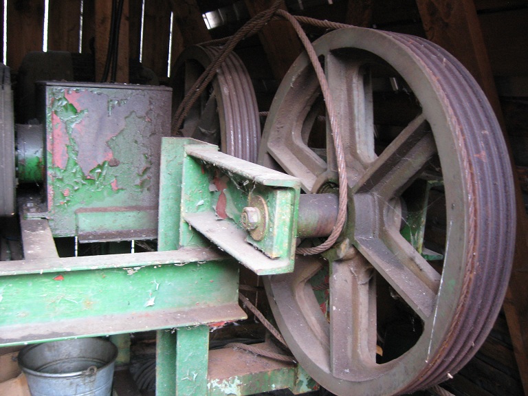 Poznámka: pohon zvratkového vleku - zamezení prokluzování lana. (lano už není uloženo tak jako za provozu - bylo min. 3x vedeno dokola)