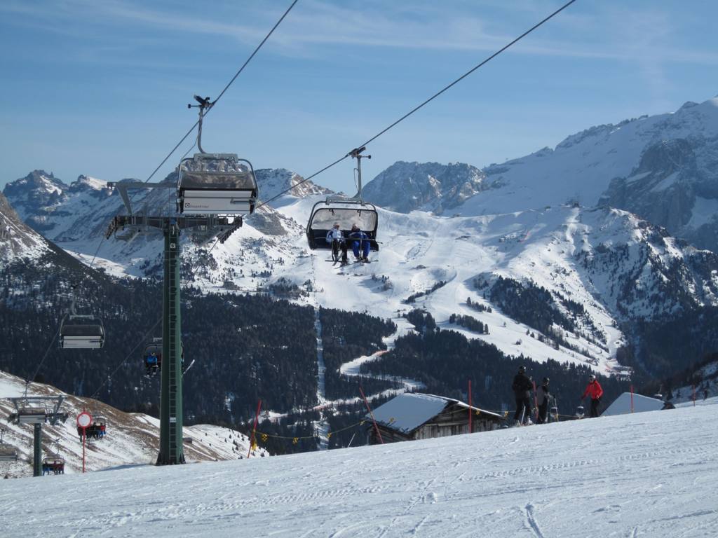 Dvousedačka Portados (výrobce Nascivera) z Arabby, bohužel po zrušení navazující dvousedačky Carpazza už není možnost pokračovat odtud směrem na Belvedere. Musí se využít kabin.