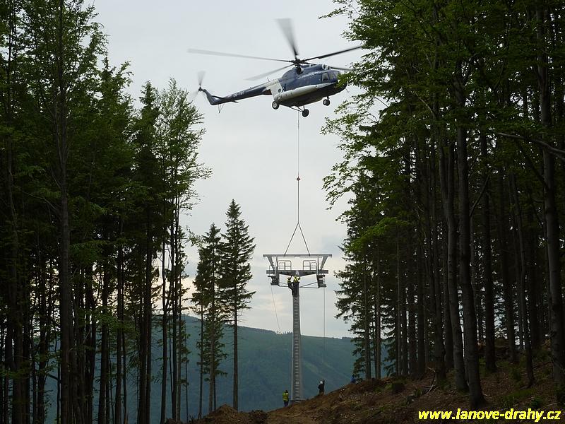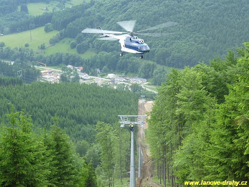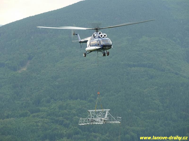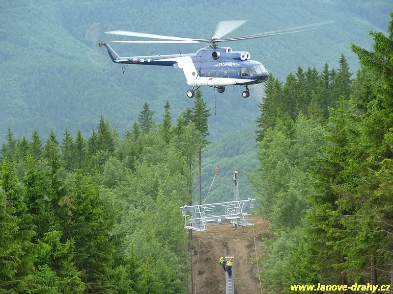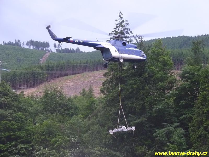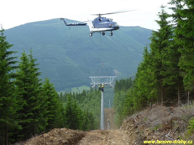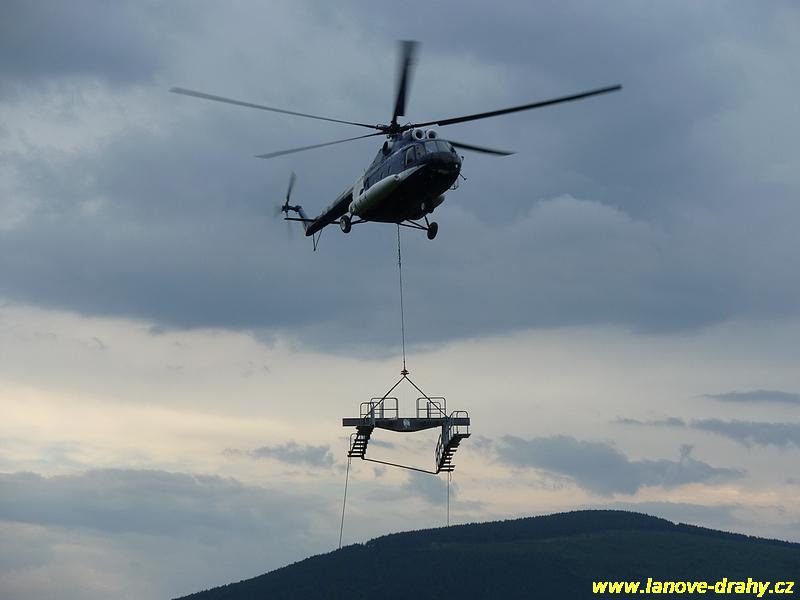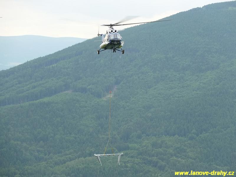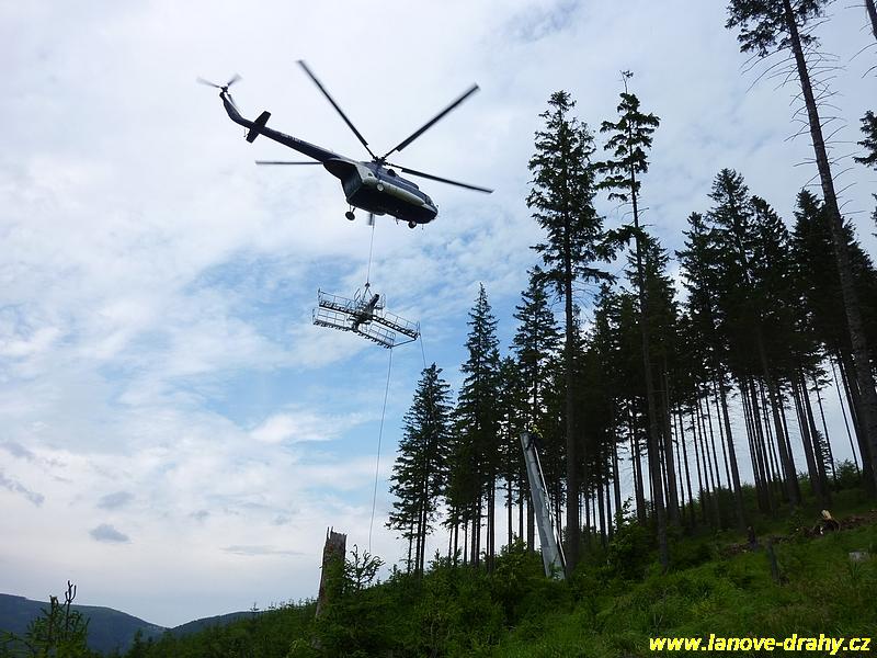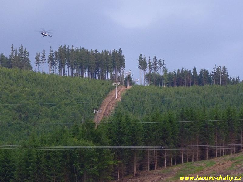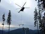 Sedačková lanovka Kouty nad Desnou - Dlouhé Stráně (montáž podpěr vrtulníkem)