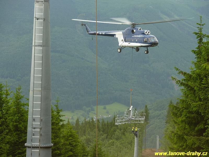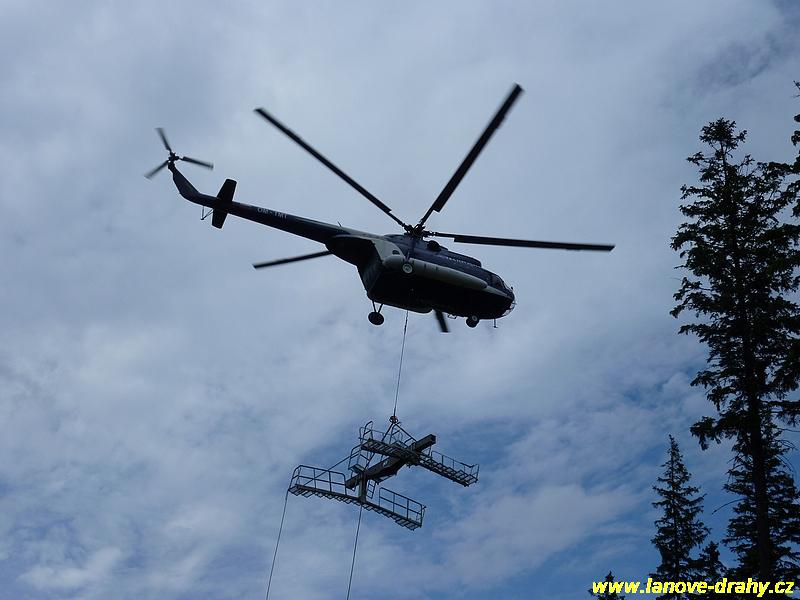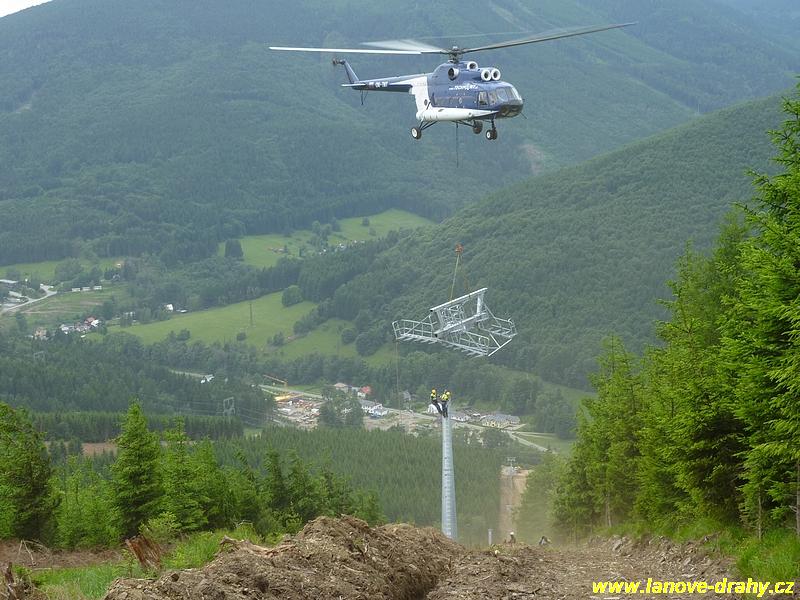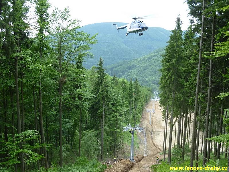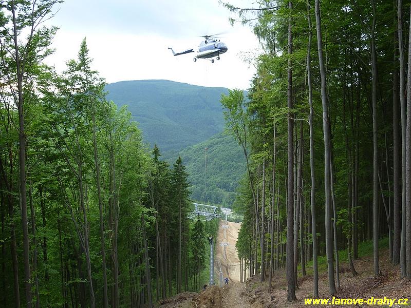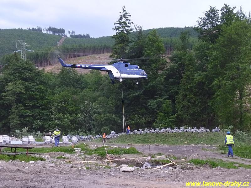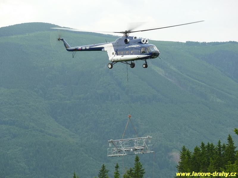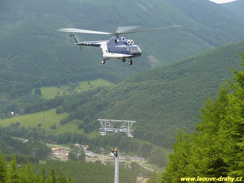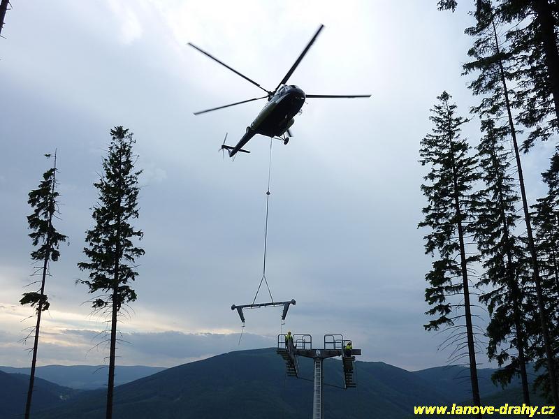 Sedačková lanovka Kouty nad Desnou - Dlouhé Stráně (montáž podpěr vrtulníkem)