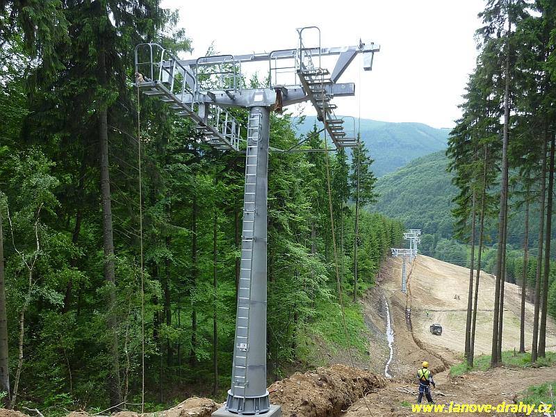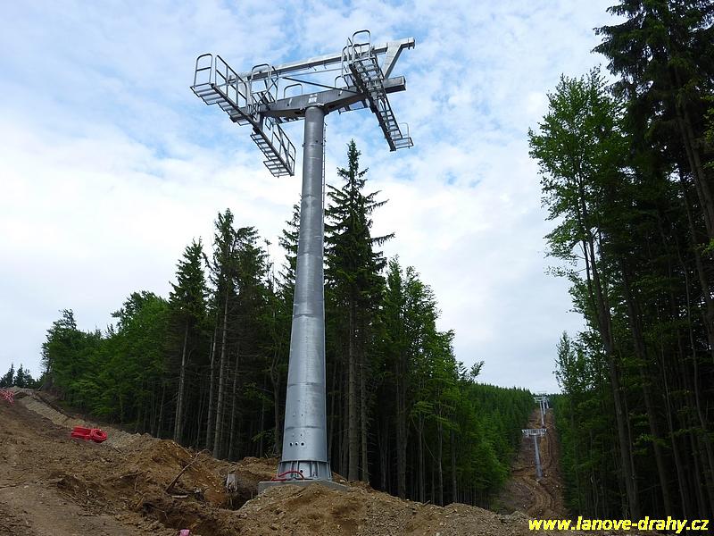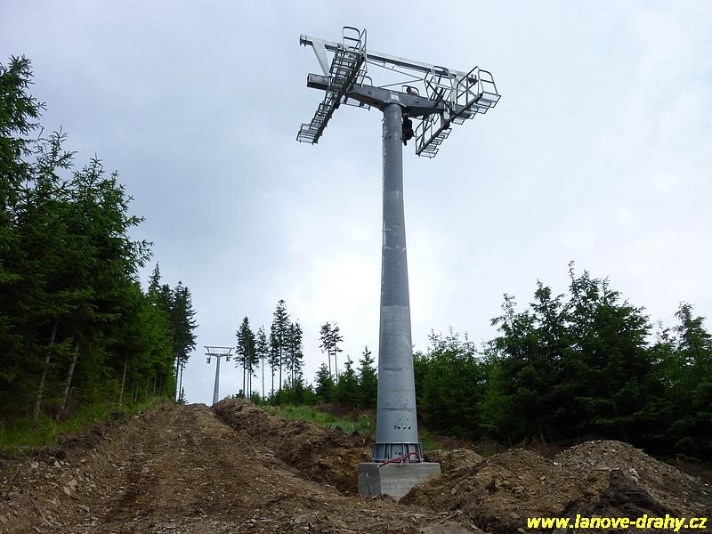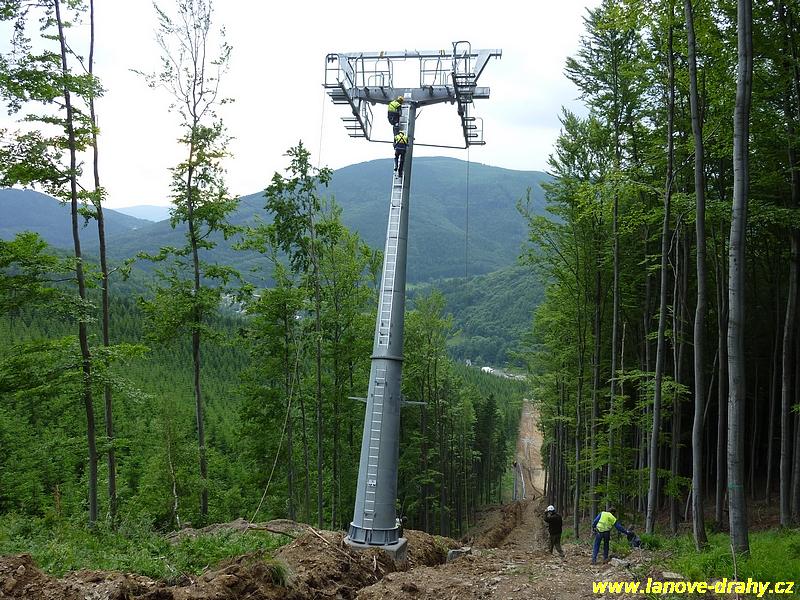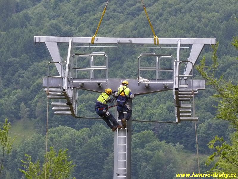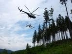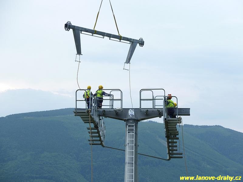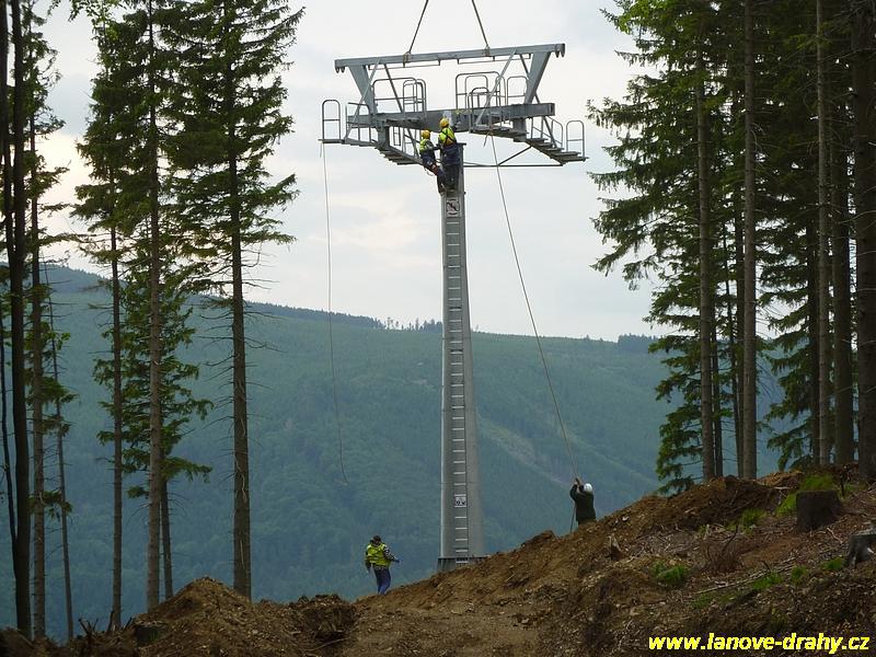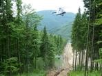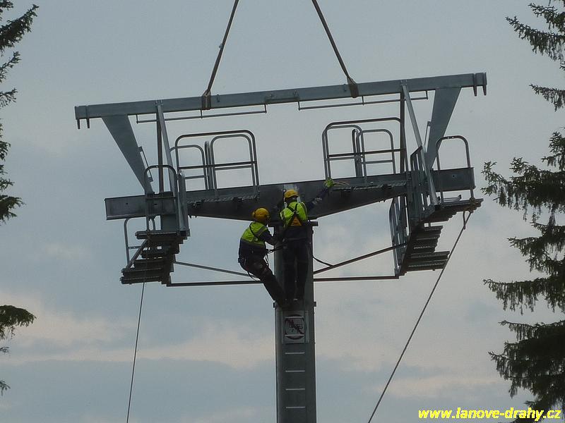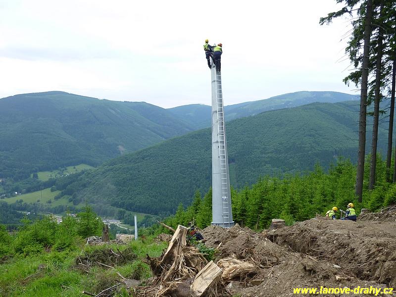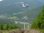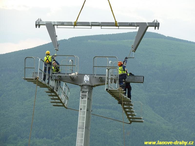 Sedačková lanovka Kouty nad Desnou - Dlouhé Stráně (montáž podpěr vrtulníkem)
