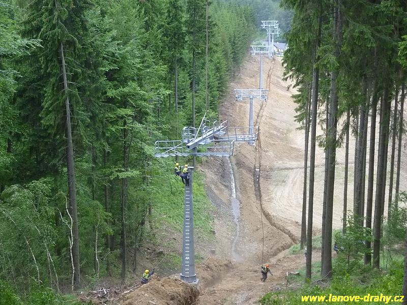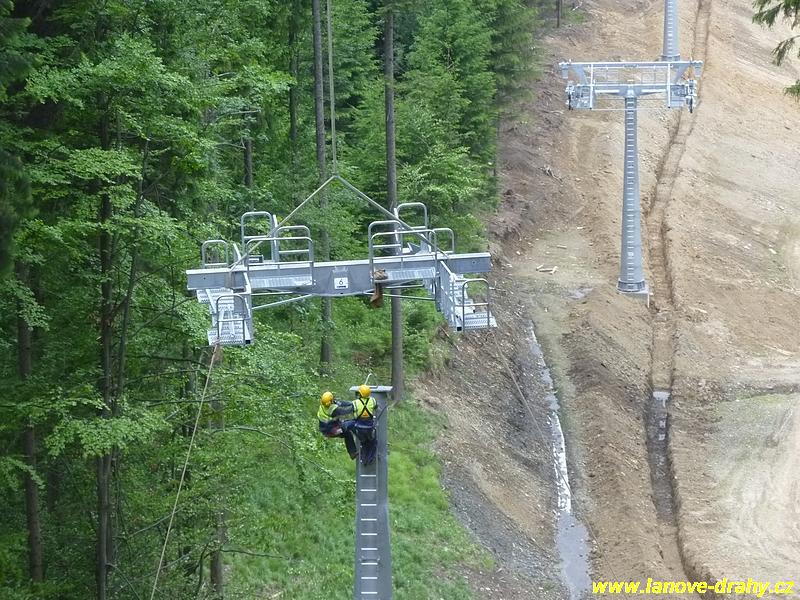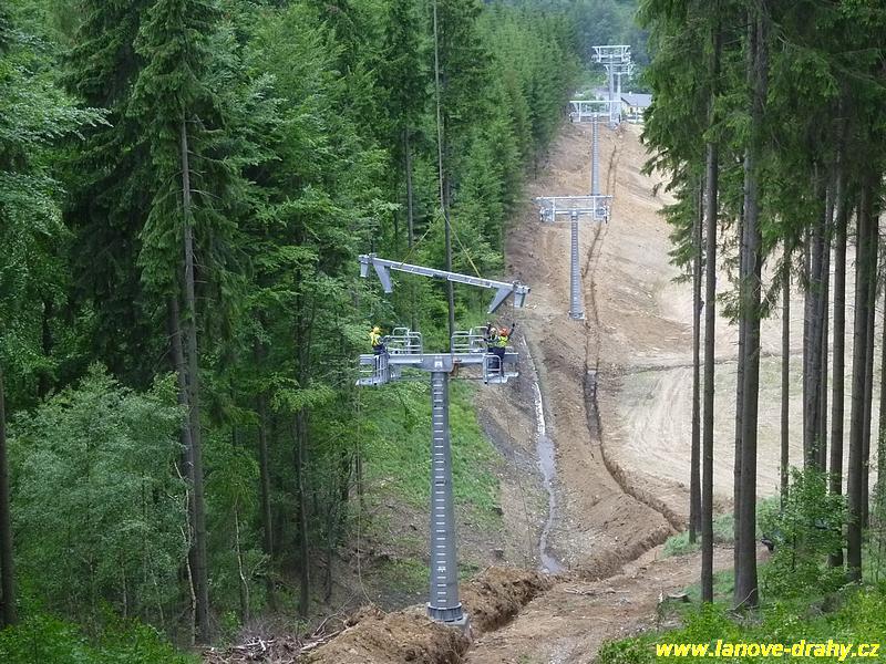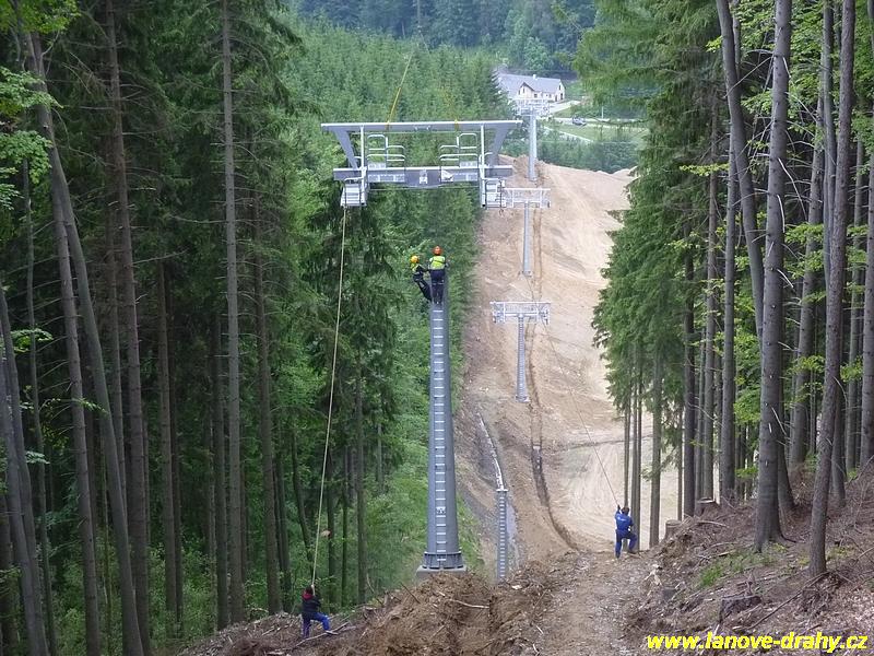 Kouty nad Desnou - Dlouhé Stráně (montáž podpěr vrtulníkem) Kouty nad Desnou - Dlouhé Stráně Kouty nad Desnou - Dlouhé Stráně (výstavba)